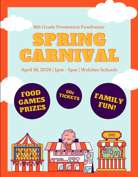 A reminder that we have our Welches School Carnival this Saturday.We hope to see you all there! Welches School CarnivalSaturday, April 181pm-5pmat Welches Middle School Our 8th Grade class is hosti...