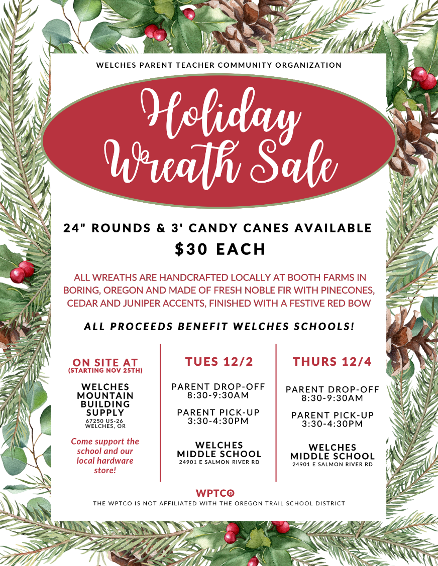 12/2 Holiday Wreath Sales – 8:30 – 9:30 am